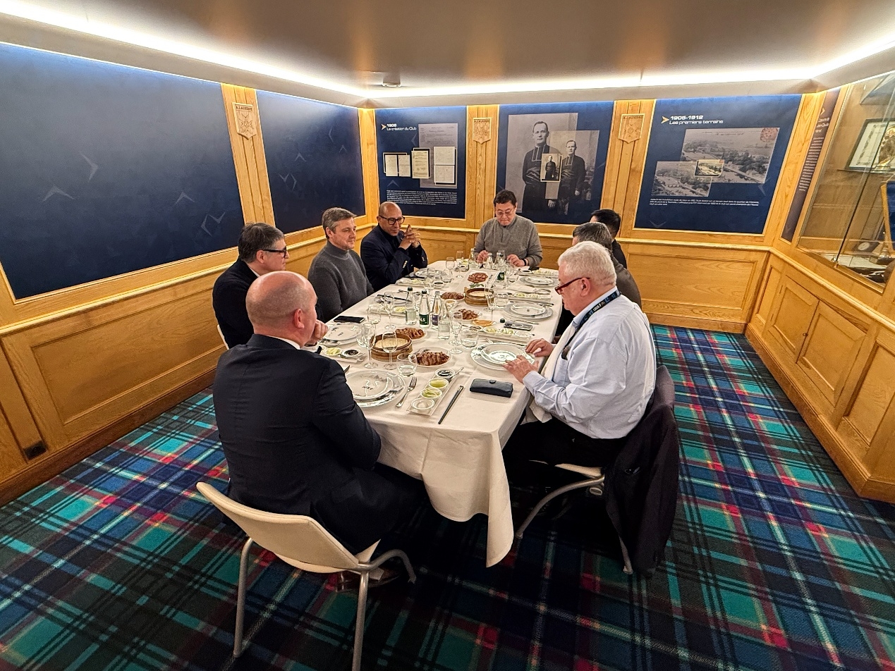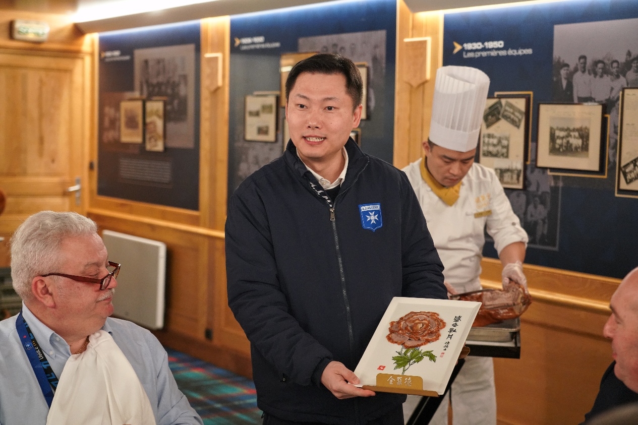 會面結束后,周云杰先生邀請迪亞洛主席一同共進午餐。一同出席午宴的重要成員還有歐塞爾市長馬勞、斯特拉斯堡主席馬克-凱勒和足協領導小組成員帕朗。本次午宴特別邀請了波爾多全聚德的主廚操刀制作烤鴨,希望各位客人可以在法國品嘗到地道的中國美食和文化。
